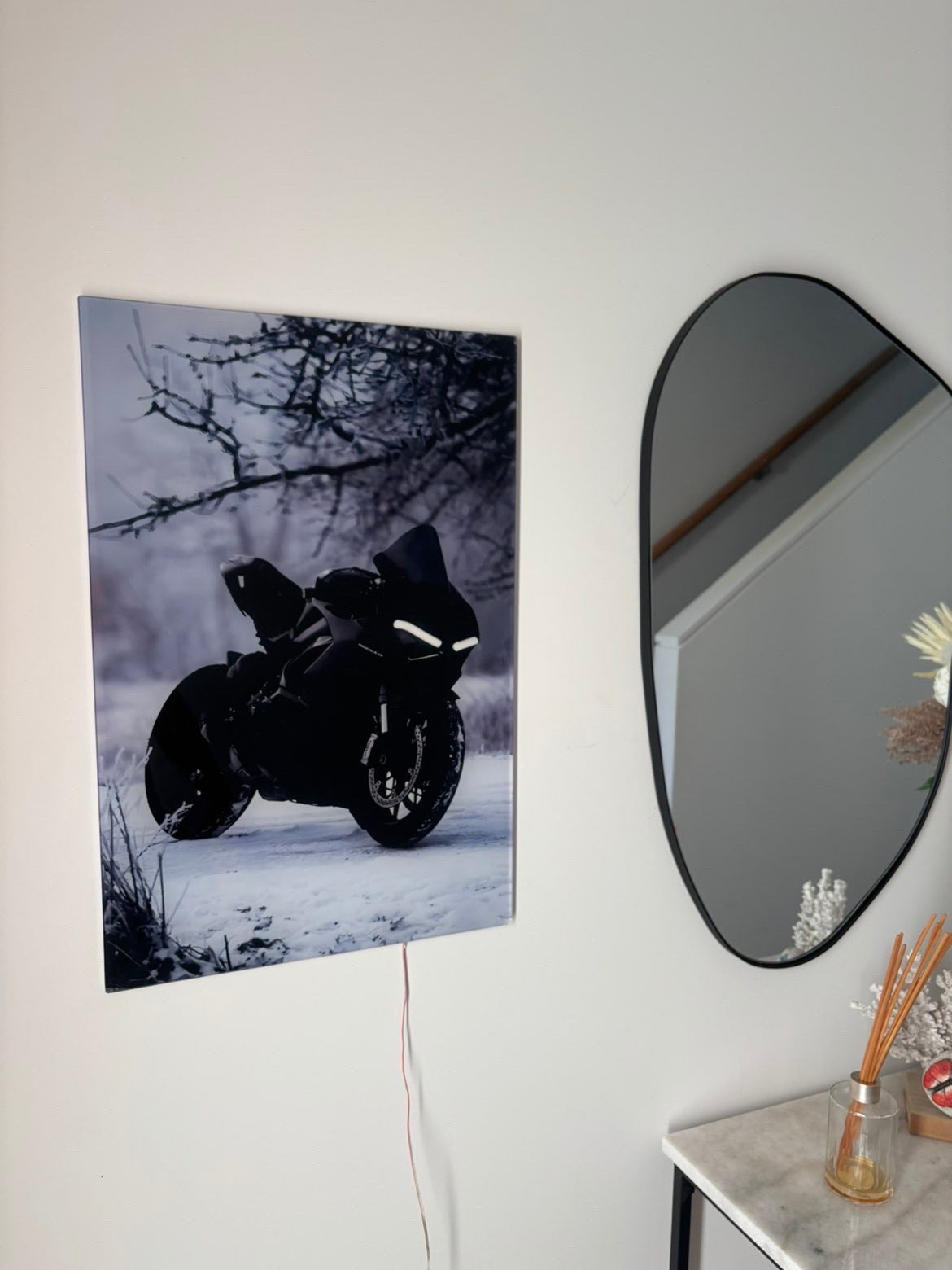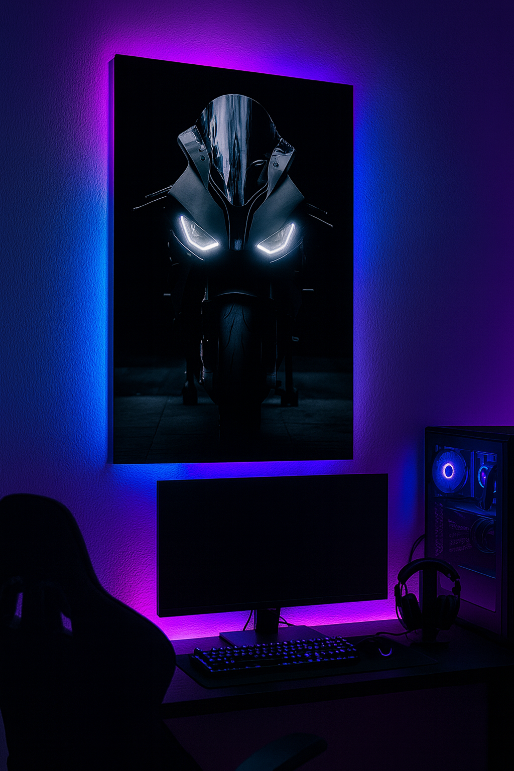 LumoRider posters aren’t just artwork, they’re functional decor. Each piece features real LED headlights, bringing your favourite bikes to life with a bold, eye-catching glow. Designed to transform any bedroom, gaming setup, or garage, our posters deliver the perfect mix of style and atmosphere!
